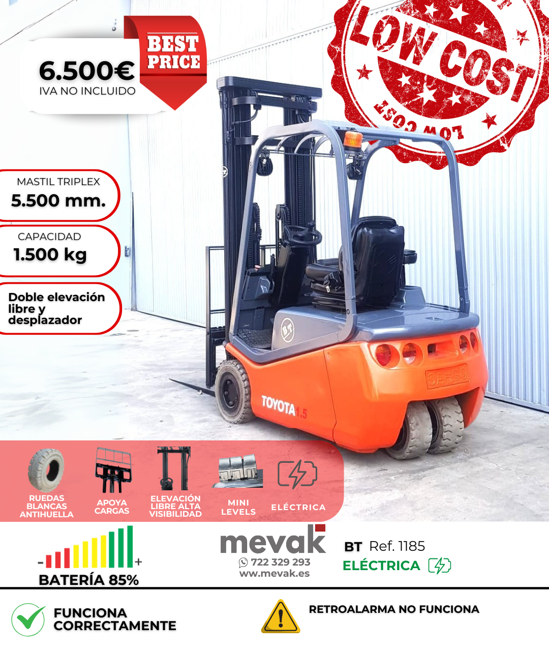 Ref: 1185 Capacidad: 1.500 kg Mástil: Triplex